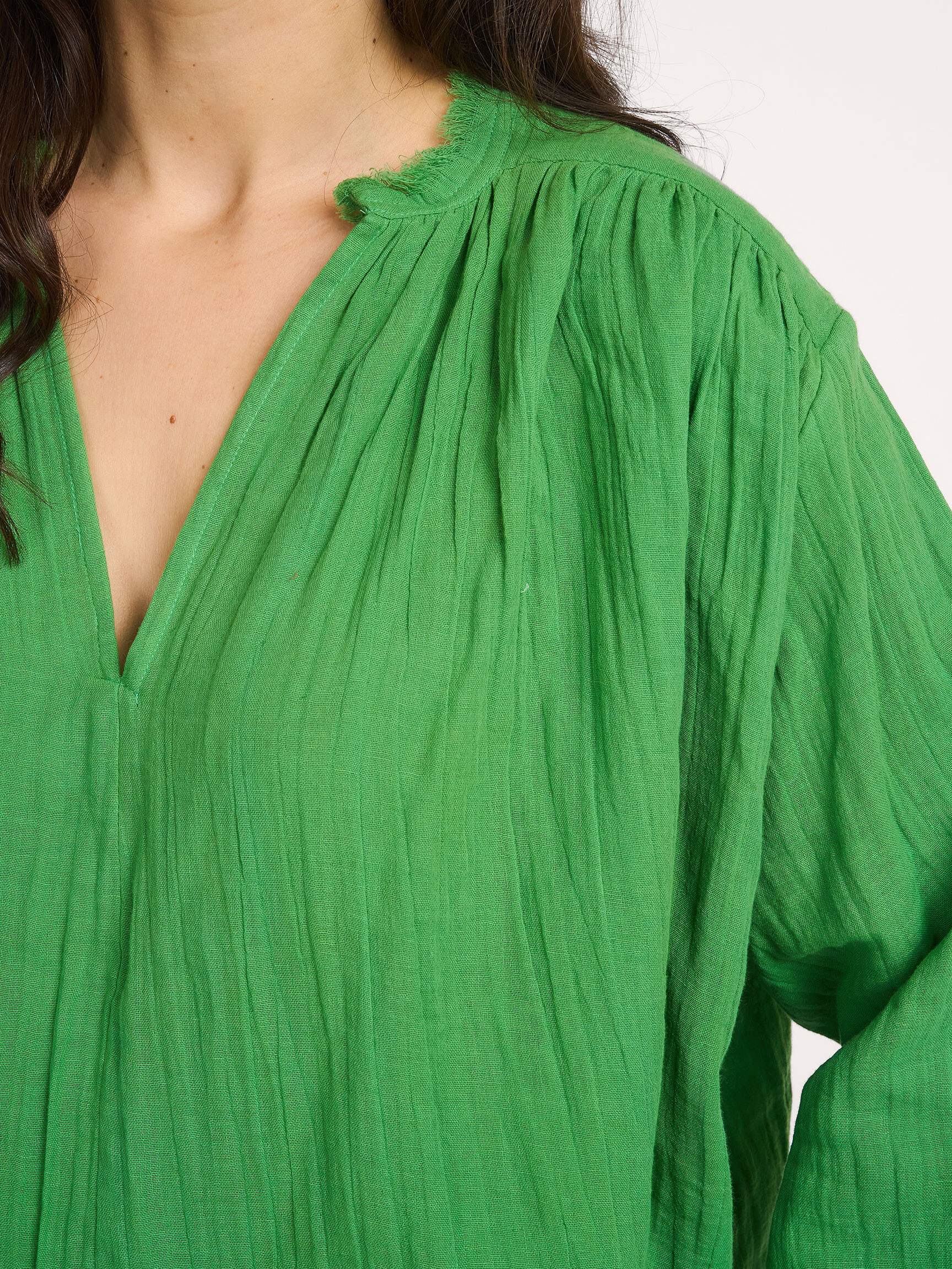 - Style: Sencha Blouse Wrinkled Cotton SenBloWriCot 109 matcha