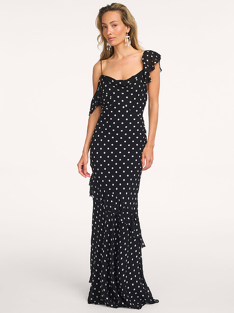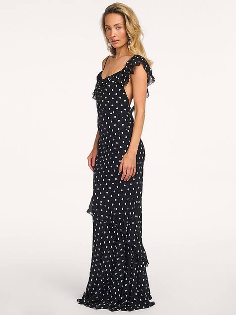 - Style: BLACK POLKA DOT GEORGETTE MAXI DRESS SS26-176X-B BLACK