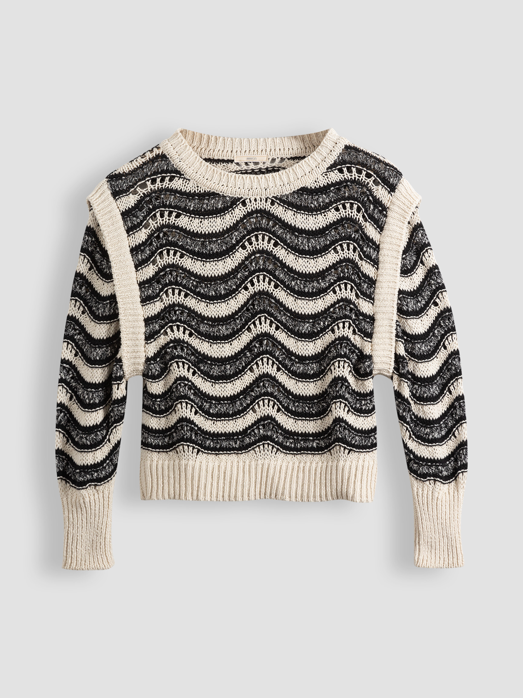 - Ribboord bij de halslijn, onderaan de mouwen en aan de onderzijde
