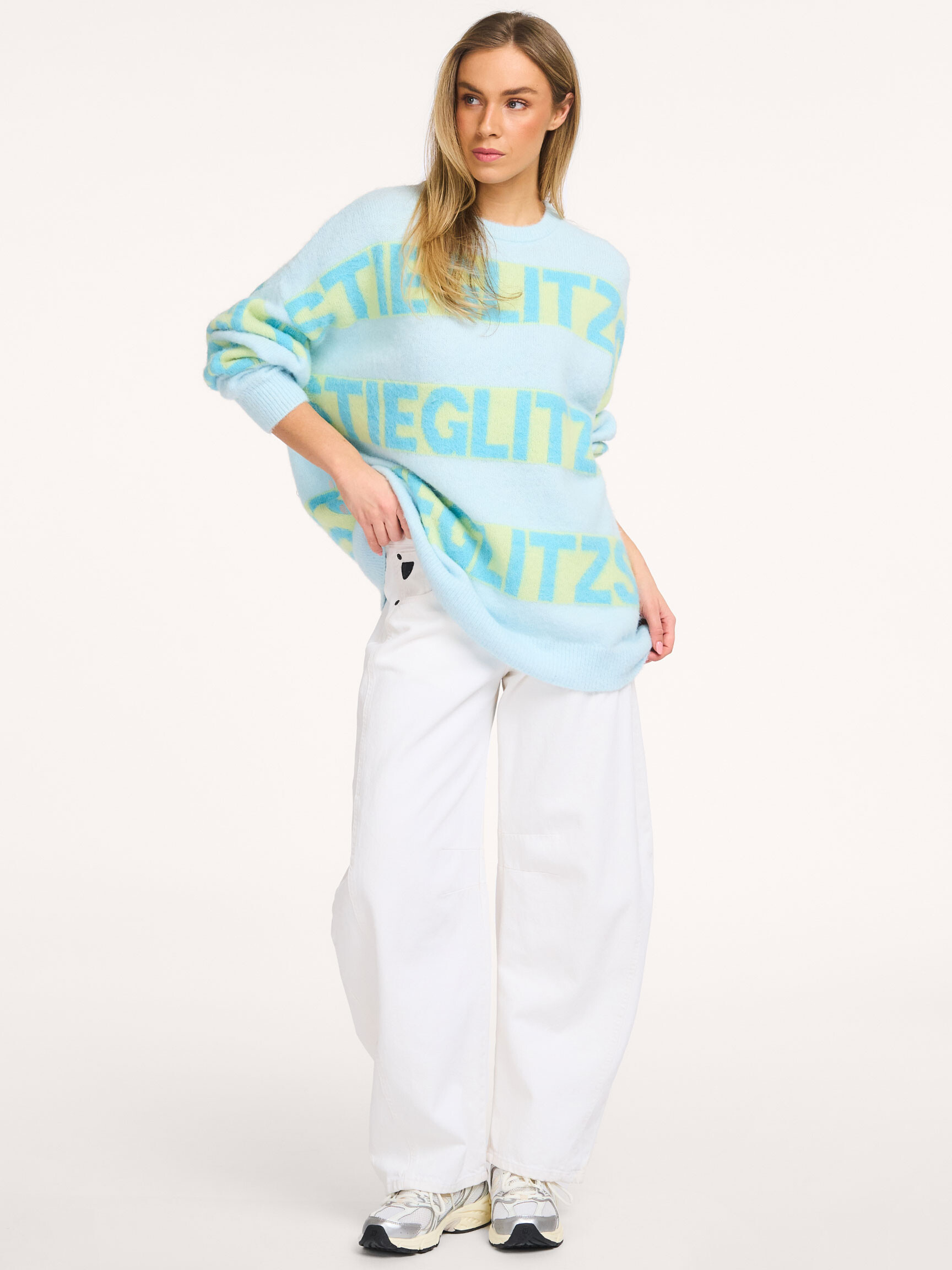 - Ons model Dané is 1.78m lang en draagt maat S.