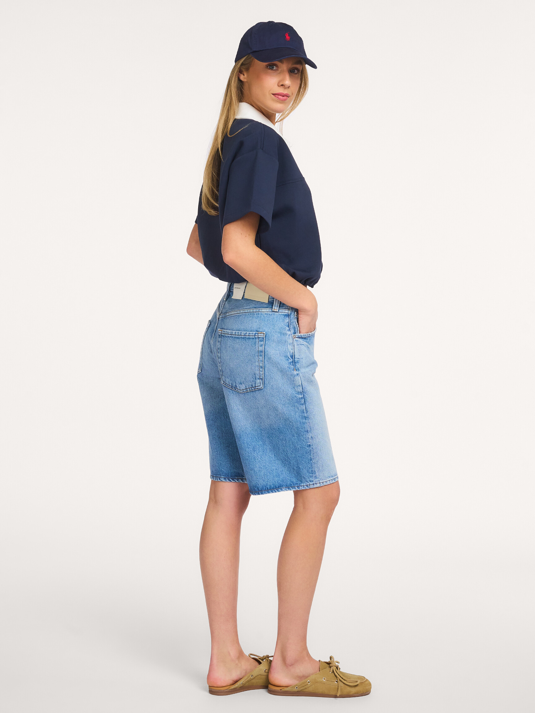 - Fabric: 77% cotton, 15% polyester, 8% elastane.
