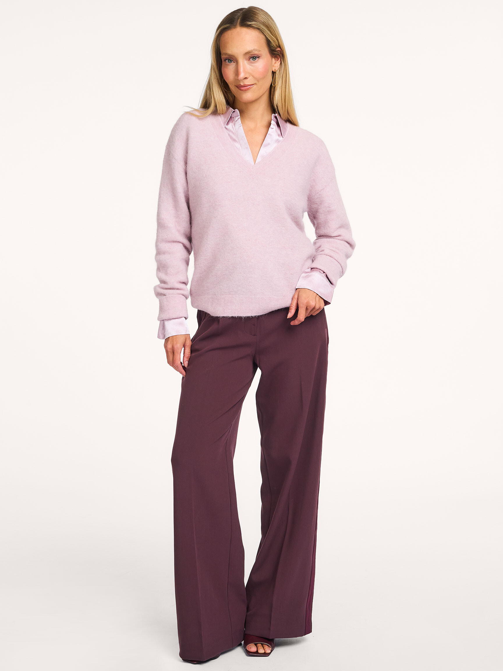 - Style: Soft V-neck sweater with long sleeves 01-000536-511 53802 CLOUD GRAY PURPLE